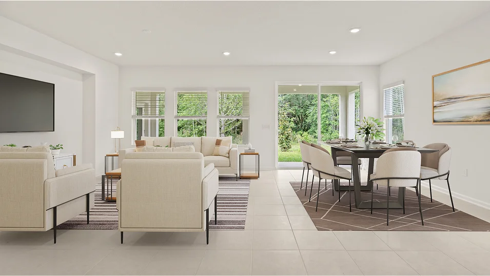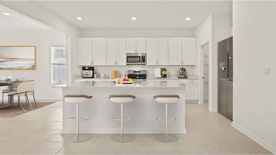 This elegant two-story home blends style and functionality in every detail. Just off the entryway, a dedicated office provides the perfect space for working from home. The open-concept living area connects the kitchen, dining and family spaces, extending out to a covered lanai for effortless indoor-outdoor living. The owner’s suite is thoughtfully positioned on the first floor for added privacy, featuring a spacious walk-in closet and a full private bathroom. Upstairs, a generous loft offers a versatile area for entertainment or relaxation, accompanied by two comfortable secondary bedrooms. Prices, dimensions and features are subject to change. Images shown are for illustration only.