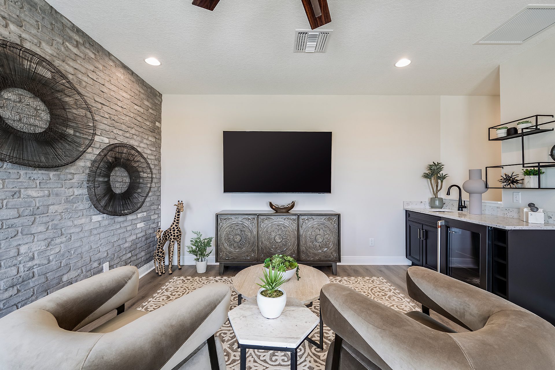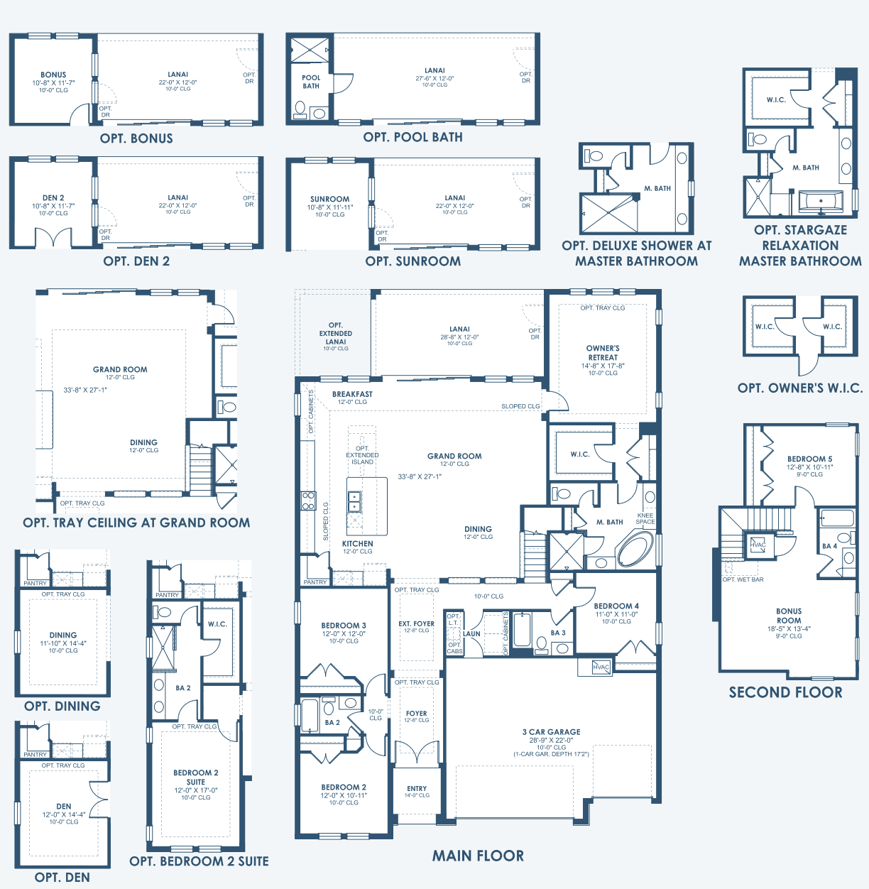 This impressive two-story residence was designed to elevate everyday living with a spacious open layout and thoughtfully placed private areas. The main floor brings together a grand living room, an expansive kitchen and a casual dining space, all flowing naturally toward a generous covered lanai that extends your living experience outdoors. Soaring 12-foot ceilings in the foyer, kitchen and main living area enhance the sense of openness and sophistication. The owner’s suite is set apart for privacy and relaxation, featuring walk-in closets and a spa-inspired bathroom with a soaking tub and a walk-in shower. Upstairs, a large bonus room, an additional bedroom and a full bathroom create the perfect setup for guests, a media room or flexible living space. This versatile floorplan offers several configuration possibilities, allowing you to adapt the home to your lifestyle, whether you prefer a formal dining room, a home office, a pool bath, a sunroom or an extended lanai. A home like this stands out for its scale, elegance and the ability to grow with you, offering comfort, style and endless potential.