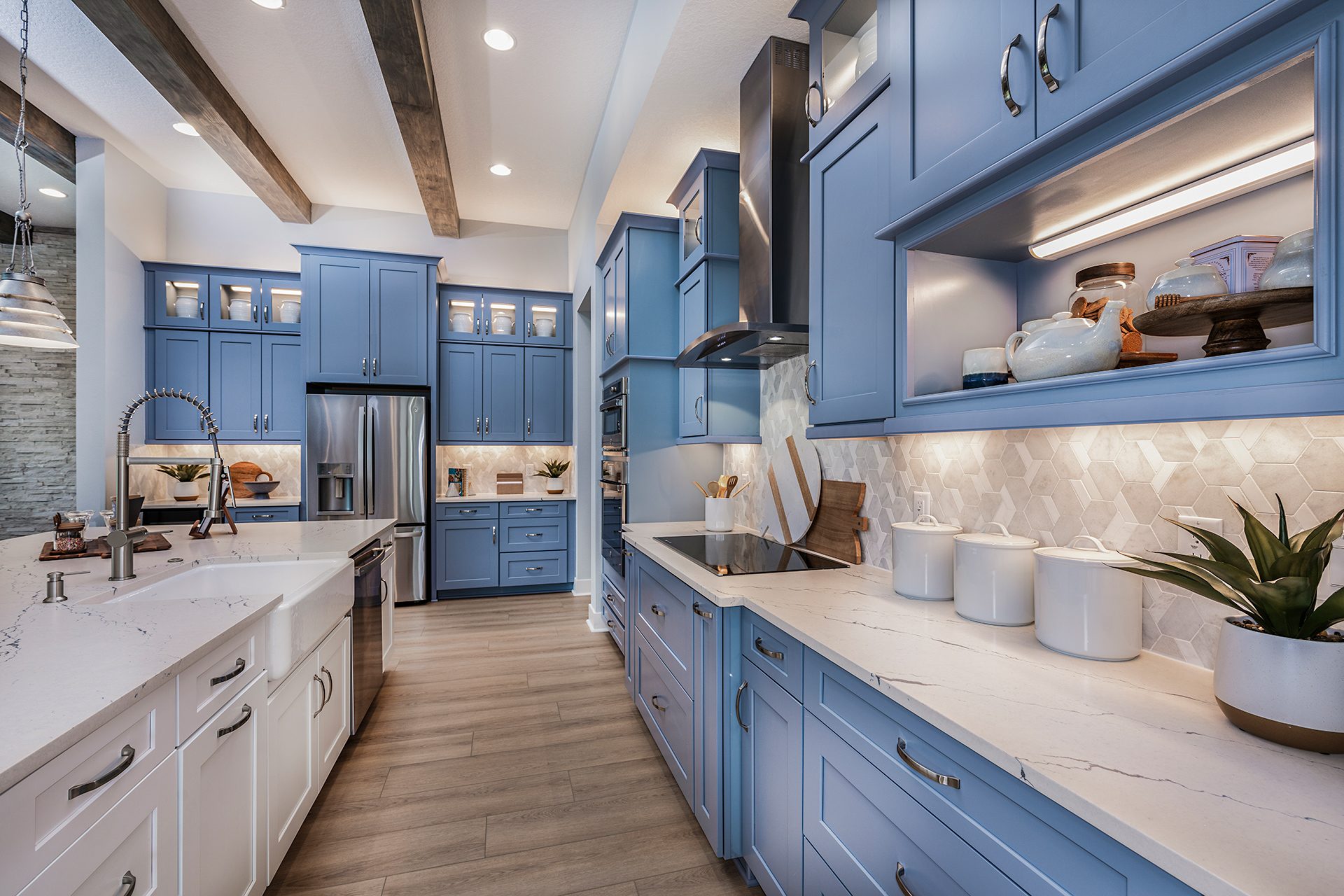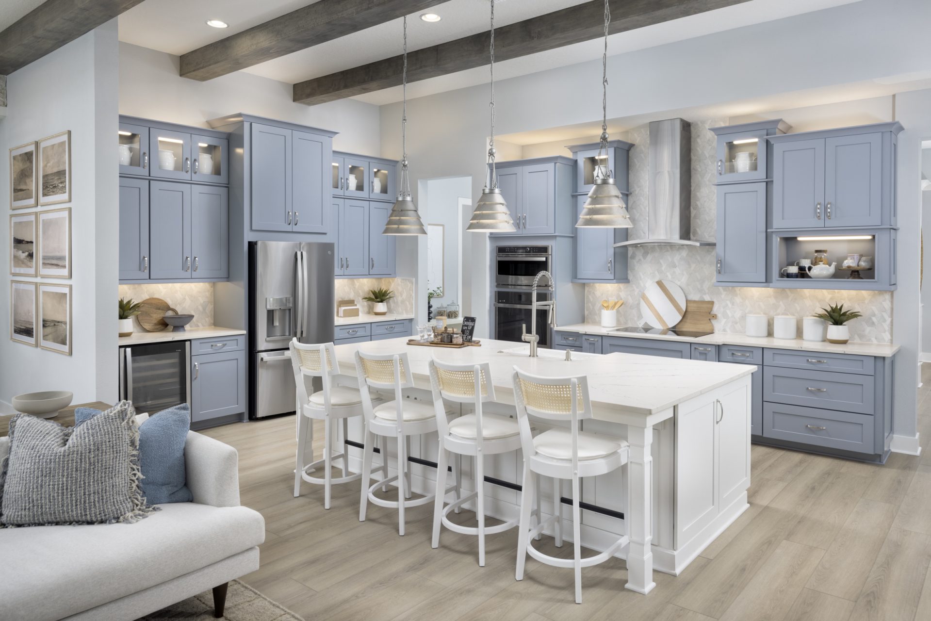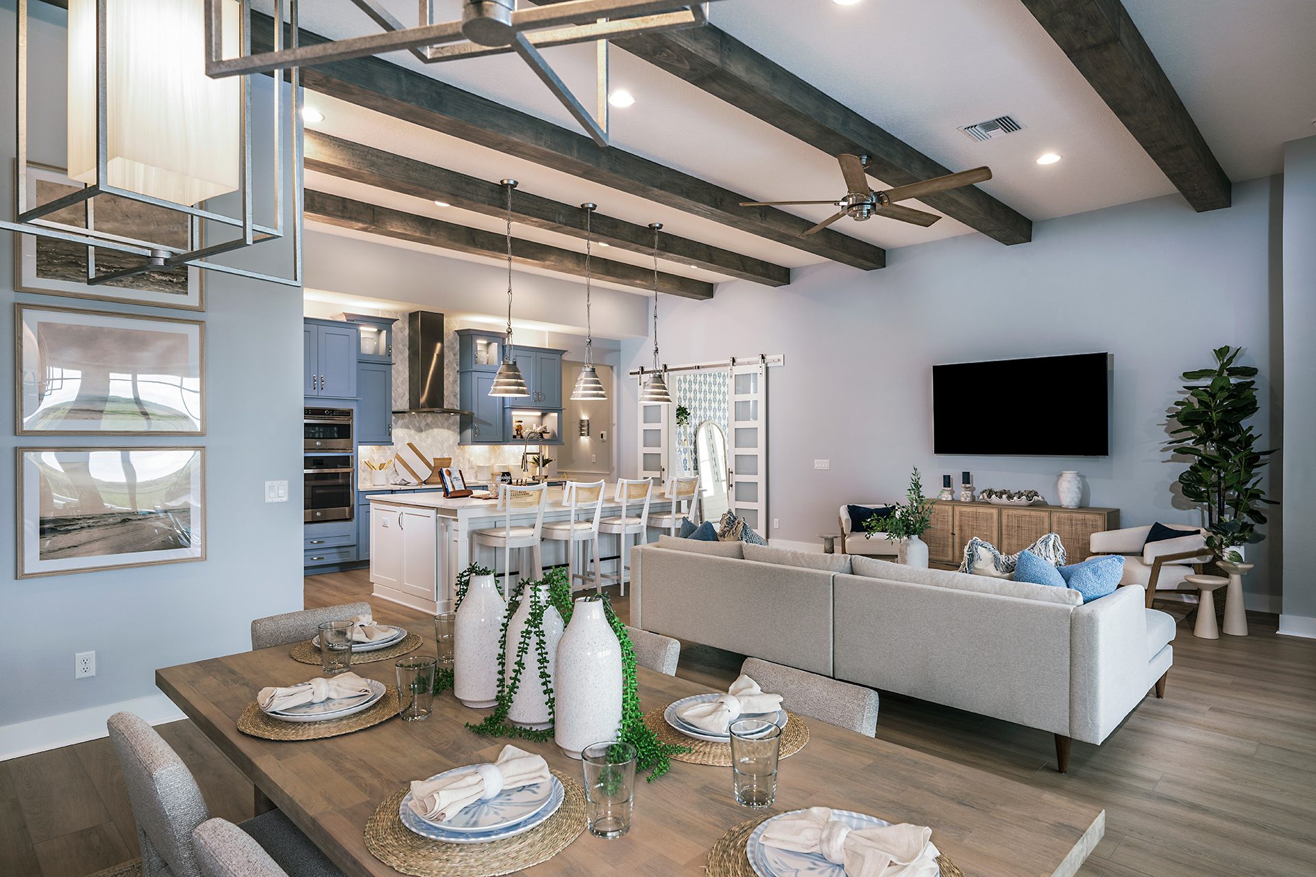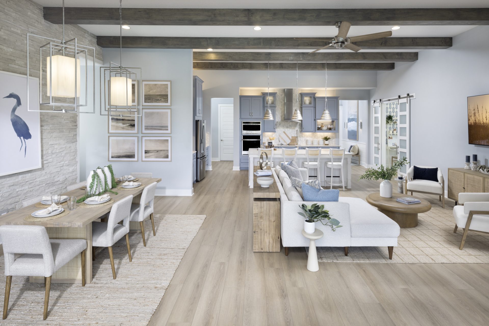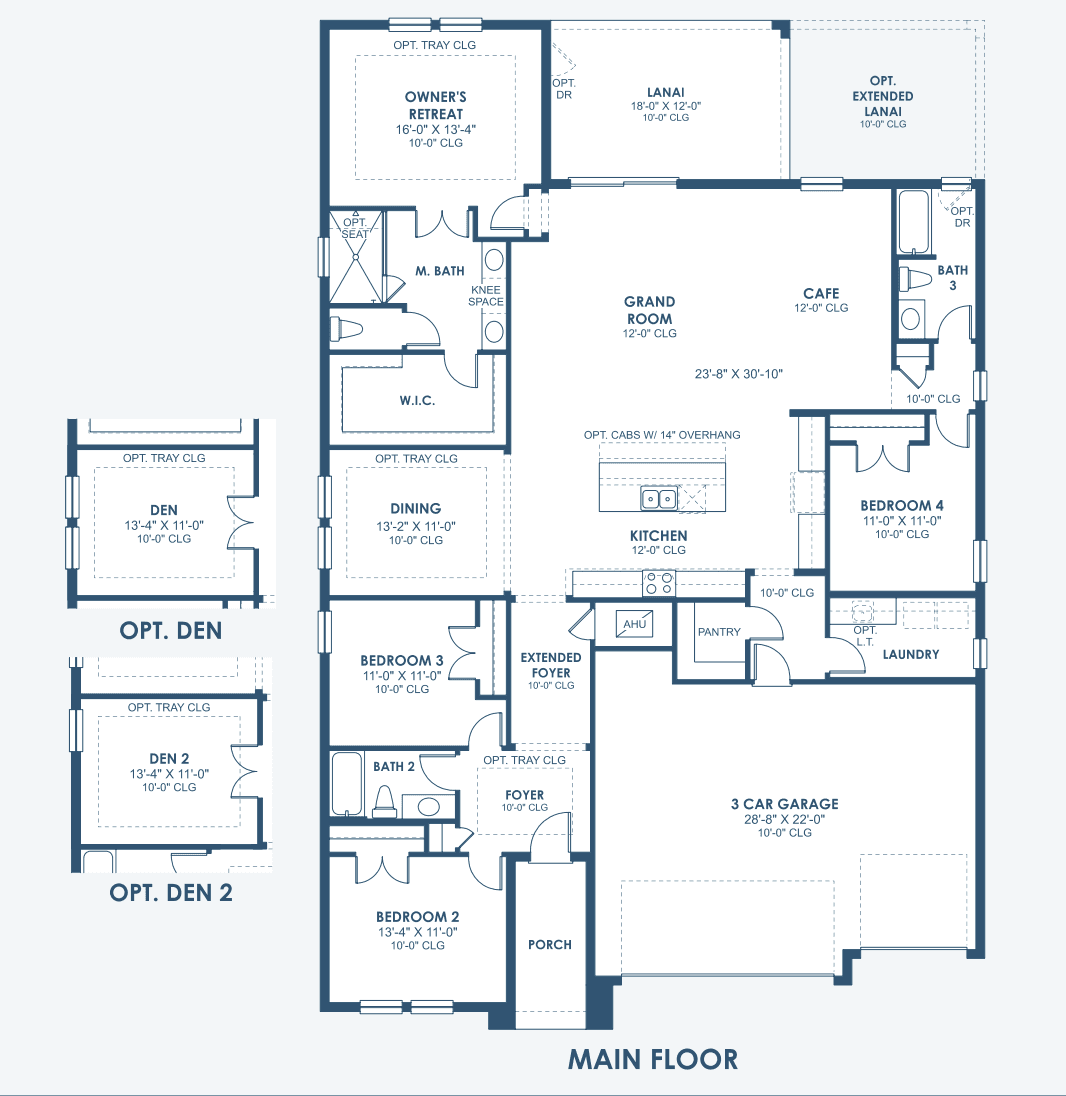 This beautifully designed single-story home delivers impressive living spaces with a layout that balances openness and privacy. A long, elegant foyer welcomes you inside and leads to the heart of the home, where soaring 12-foot ceilings enhance the sense of volume in the grand living room, the gourmet island kitchen and the bright café-style dining area. These connected spaces flow seamlessly to the covered lanai, creating the perfect setting for indoor-outdoor living. Thoughtfully separated from the main living area, the secondary bedrooms provide comfort and privacy for family or guests. A flexible room near the foyer can serve as a formal dining space, home office or cozy den, while an oversized laundry room adds everyday convenience. The owner’s suite is a true retreat, featuring an expansive walk-in closet, double vanities and a spacious walk-in shower designed for relaxation and ease. Refined, functional and welcoming, this home stands out for its thoughtful design and exceptional livability.
